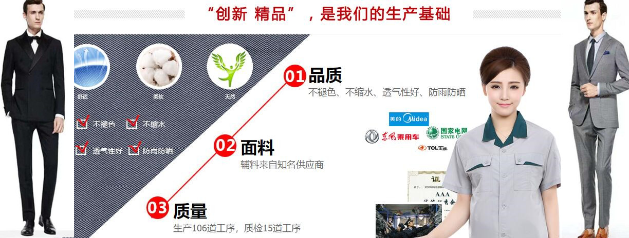 專業(yè)訂做高端定制西服、企業(yè)員工制服、酒店 、酒樓、KTV、工廠 、公司企業(yè) 、銷售案場 、物業(yè)、學(xué)校等……只要您一個電話,我們會完美的為你解決服裝需求,為您企業(yè)塑造完美形象。